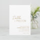 Modern faux gold all in one wedding invitation featuring a simple and minimal design with the bride's name in an elegant script and the groom's name in a contemporary sans serif font. Below in the lower right corner are your event details in a minimalist layout. The back has your additional details and QR Code, so you can skip the enclosure card and RSVP card.