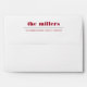 Wedding Custom Personalised envelopes feature graphic bold style ruby red return text on a classic white background.