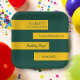 This elegant green and gold Paper Plate is perfect for a modern Birthday. the simple design features elegant green calligraphy on gold stripes on a green background.