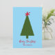 The Minimal Green Christmas Tree Red Snowflake Simple Holiday Card.