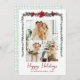 Minimal Greenery Garland Happy Holidays 3 Photo Holiday Card