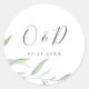 Minimal greenery monogram wedding favour classic round sticker