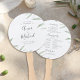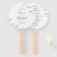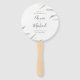 Modern chic watercolor botanical foliage greenery design, simple and elegant with calligraphy names, great round wedding program fans for modern wedding, rustic wedding, and botanical garden wedding in spring and summer.