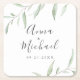 Minimal greenery rustic wedding square paper coaster