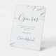 Minimal greenery script rustic Wedding Open Bar Pedestal Sign