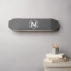 A minimalist monogram design with grey and white monogram emblem with classic block typography initial on a simple grey background.