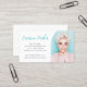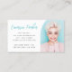 Business card featuring your custom photo inside an half arch and your name in a modern, aqua blue or custom colour script font with the contact information below. Fonts and colours can be changed in the design tool.