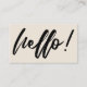 Minimal Hello in Handwriting Script Black on Cream Business Card