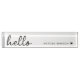 A minimal desk name plate design with a stylish handwritten script large typograhy quote "hello" paired with your own name and a simple black heart. Designed in a modern mininalist style in clean simple black and white. The perfect personalised gift or accessory for any time of year!