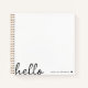 A minimal notebook design with a stylish handwritten script large typograhy quote "hello" paired with your own name and a simple black heart. Designed in a modern mininalist style in clean simple black and white. The perfect personalized gift or accessory for any time of year!
