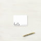 A minimal post-it note design with a stylish handwritten script large typograhy quote "hello" paired with your own name and a simple black heart. Designed in a modern mininalist style in clean simple black and white. The perfect personalised gift or accessory for any time of year!