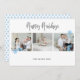 Minimal and elegant holiday photo collage card with blue snowflake decoration. You can personalize the card with the family name at the bottom.
