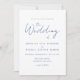 This simple, modern wedding invitation features indigo blue text on a white background, with the words "the Wedding of" in stylish handwriting calligraphy. Add the names of the bride and groom and wedding details in blue sans serif font. The reverse side is solid blue.
