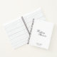Islamic Muslim Wedding Planner Spiral Notebook. This hardcover book has a solid white background and two types of script fonts in black colour. It is an elegant and minimal design. You can edit the names of the couple and the date of the wedding. You can add text on the back of the book. There are a few colours available for the spiral so you can change it if you like. If you do not want lined papers inside the book, you can change them by selecting one of the options from the "Inside paper type" section on the right side.