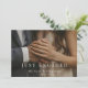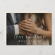 Share your exciting news with this minimalist Just Engaged photo announcement card, designed in a soft modern style with clean typography and a refined neutral palette.