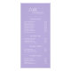 Modern and professional lavender / purple price list rack card featuring a simple and minimal design with your name in an elegant script and contemporary sans serif font. The template includes several divided sections for your services in a minimalist layout. The back has your contact info and optional QR code. If you prefer, the QR code may be removed in the design editing tool.