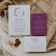 This minimal leaf berry formal monogram wedding invitation is perfect for a boho wedding. The design features a simple greenery leaf silhouette in a romantic summer violet colour with minimalist bohemian garden style. Personalise with the first initials of the bride and groom.
