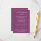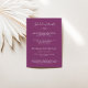 This minimal leaf berry weekend schedule of events enclosure card is perfect for a boho wedding. The design features a simple greenery leaf silhouette in a romantic summer violet colour with minimalist bohemian garden style.