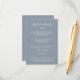 This minimal leaf blue and white weekend schedule of events enclosure card is perfect for an elegant wedding. The design features a simple greenery silhouette in white on a dusty blue background with classic minimalist style.