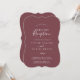 This minimal leaf burgundy wedding reception invitation is perfect for a boho post elopement party. The bohemian design features a simple greenery silhouette in a dark red wine colour with classic minimalist boho style. RSVP cards are sold separately, or you can add RSVP info to the back of the card.