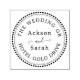 Modern return address stamp featuring your name in a stylish script and your address in simple typography. Save time and effort by effortlessly personalising your return address. Perfect for wedding invitations, party announcements, everyday correspondence and business mailings.