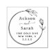 Modern return address stamp featuring your name in a stylish script and your address in simple typography. Save time and effort by effortlessly personalising your return address. Perfect for wedding invitations, party announcements, everyday correspondence and business mailings.