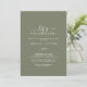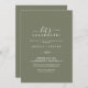 This minimal leaf dark green let's celebrate invitation is perfect for a boho engagement party, wedding after party, retirement, graduation or any happy event. The design features a simple greenery leaf silhouette in olive green with minimalist mountain bohemian style.