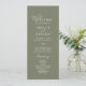 This minimal leaf dark green wedding program is perfect for a boho wedding. The design features a simple greenery leaf silhouette in olive green with minimalist mountain bohemian style. Include the name of the couple, the wedding date and location, thank you message, order of service, wedding party and an optional "in loving memory" memorial.