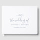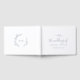 This minimal leaf dusty blue monogram back wedding guest book is perfect for an elegant wedding. The design features a simple greenery silhouette in light slate blue with classic minimalist style. Personalise the front cover with the names of the bride and groom and the wedding date.
