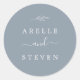 These minimal leaf dusty blue wedding envelope seals are perfect for an elegant wedding. The design features a simple greenery silhouette in light slate blue with classic minimalist style. Personalise the label with the names of the bride and groom.
