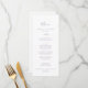 This minimal leaf dusty purple wedding dinner menu card is perfect for a boho wedding. The design features a simple greenery silhouette in light lavender purple with classic minimalist style. This menu can be used for a wedding reception, rehearsal dinner, or any event.