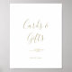 This minimal leaf gold cards and gifts sign is perfect for an elegant wedding or bridal shower. The design features a simple greenery silhouette in faux gold foil with classic minimalist style. The line of text at the bottom of the sign can be personalized with the date, the names of the bride and groom, or a short message like "Thank you". This sign can be used for a wedding or any event or party.