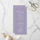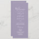 This minimal leaf lavender wedding program is perfect for a boho wedding. The design features a simple greenery leaf silhouette in pastel lilac purple with minimalist bohemian garden style. Include the name of the couple, the wedding date and location, thank you message, order of service, wedding party and an optional "in loving memory" memorial.
