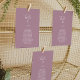 These minimal leaf mauve hanging seating chart cards are perfect for a boho wedding. The design features a simple greenery leaf silhouette in a romantic purple pink colour with minimalist bohemian garden style. The card prints on the front and back (double-sided).