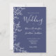 Minimal Leaf Navy Blue Wedding Invitation