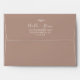 This minimal leaf neutral wedding invitation envelope is perfect for a boho wedding. The design features a simple greenery leaf silhouette in an earthy natural tone with minimalist desert bohemian style. Personalise the envelope flap with your return address. These envelopes can also be used for a bridal shower, rehearsal dinner, or any special event.