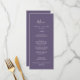 This minimal leaf plum purple dinner and drinks menu card is perfect for a boho wedding. The jewel tone design features a simple greenery leaf silhouette in a dark blue violet purple with minimalist boho style. This menu features the dinner menu on one side and the drinks menu on the back. It can be used for a wedding reception, rehearsal dinner, or any event.