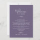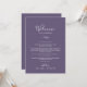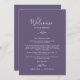 These minimal leaf plum welcome letter & itinerary cards are perfect for a boho wedding. The jewel tone design features a simple greenery leaf silhouette in a dark blue violet purple with minimalist boho style. The front of the card features a welcome letter and the back of the card features the wedding itinerary. These notes are perfect for destination weddings and hotel guest welcome bags.