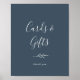 This minimal leaf slate blue cards and gifts poster sign is perfect for an elegant wedding or bridal shower. The design features a simple greenery silhouette in a dark grey blue with classic minimalist style. The line of text at the bottom of the sign can be personalised with the date, the names of the bride and groom, or a short message like "Thank you". This sign can be used for a wedding or any event or party.