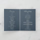 This minimal leaf slate blue folded wedding program is perfect for a boho wedding. The design features a simple greenery silhouette in a dark grey blue with classic minimalist style.