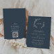 Minimal Leaf | Slate Blue Monogram QR Code Wedding Invitation