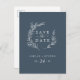 Minimal Leaf | Slate Blue Save the Date Invitation Postcard