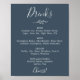 Minimal Leaf | Slate Blue Wedding Drinks Menu Poster
