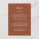 This minimal leaf terracotta details enclosure card is perfect for a boho wedding. The design features a simple greenery leaf silhouette in earthy burnt orange with minimalist desert bohemian style.