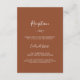 This minimal leaf terracotta reception enclosure card is perfect for a boho wedding. The design features a simple greenery leaf silhouette in earthy burnt orange with minimalist desert bohemian style. Personalise this detail enclosure card with your reception information and include your wedding website address too!