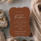 This minimal leaf terracotta wedding reception invitation is perfect for a boho post elopement party. The design features a simple greenery leaf silhouette in earthy burnt orange with minimalist desert bohemian style. RSVP cards are sold separately, or you can add RSVP info to the back of the card.