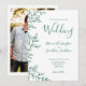 Minimal Leaf White Emerald Green Photo Wedding Invitation