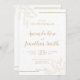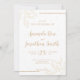 A pure simple white and gold, minimal invitation with gold glitter lines as minimal borders at the corners and soft minimal line-art leaves to decorate it. Texting I chose to be in the same colour.