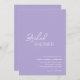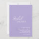 Modern lavender / purple bridal shower invitation featuring a simple and minimal design with the event title in an elegant script and a contemporary sans serif font. Below in the lower right corner are your event details in a minimalist layout.