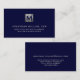 Minimal Luxury Navy Blue Silver Monogram Business Card